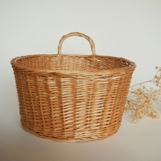 Vintage Painted Floral Wicker and Wood Basket with Handle