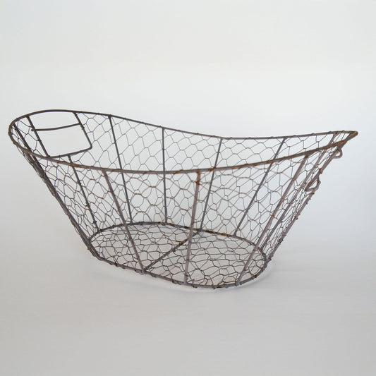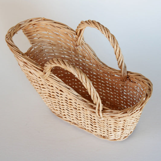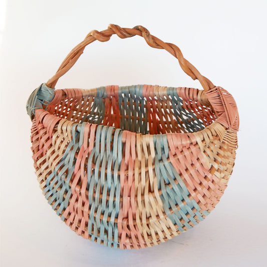 Vintage Handmade Southwestern Buttocks Basket, Green and Pink Stripes