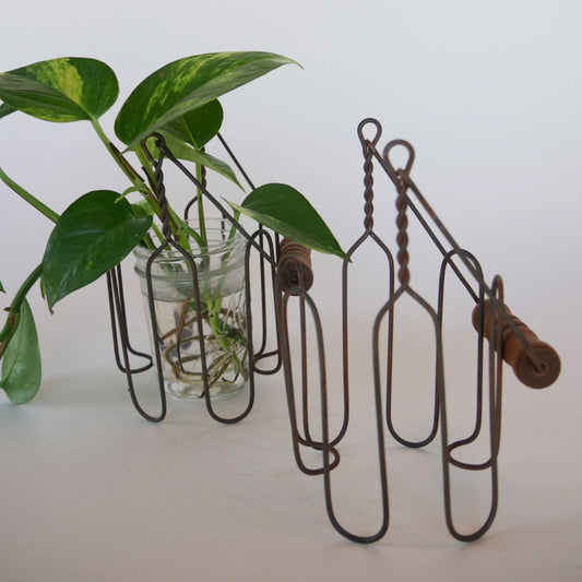 Vintage Wire Jar Holder with Wood Handle, Each Sold Separately
