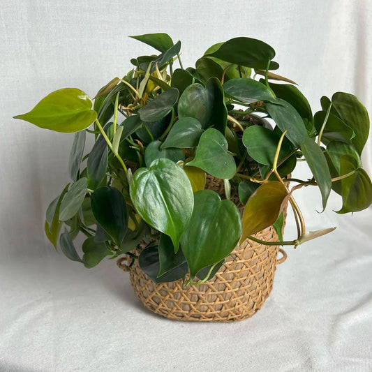 1970's Green Bamboo Woven Basket with Lid & Handle