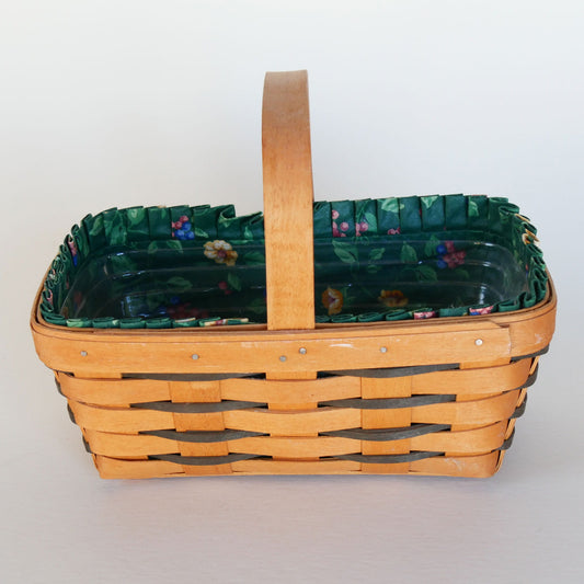 Longaberger Woven Traditions Large Berry Basket, Green Floral Liner