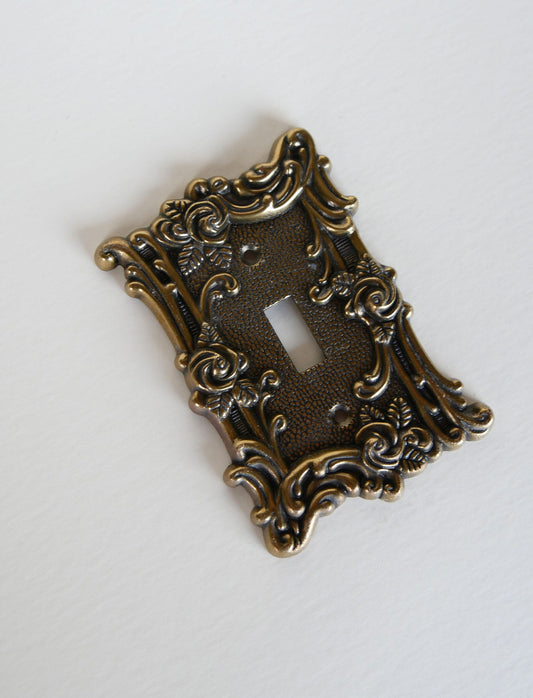 Vintage Brass Single Light Switch Cover, Rose Detail