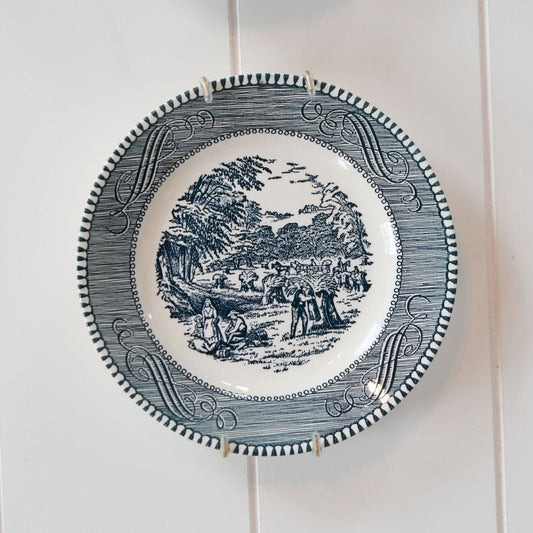 Currier and Ives Bread and Butter Plate Set & Hangers, Steamboat and Harvest