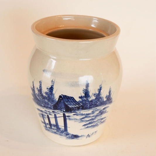 Vintage Paul Storie Pottery Crock, Barn Scene