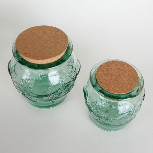 Vintage Pfaltzgraff Green Glass Canister Set, Large and Medium