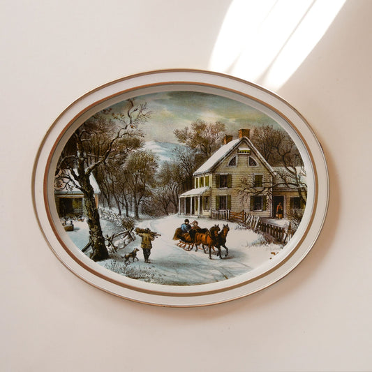 Vintage Currier and Ives Decorative Tray, The American Homestead Winter