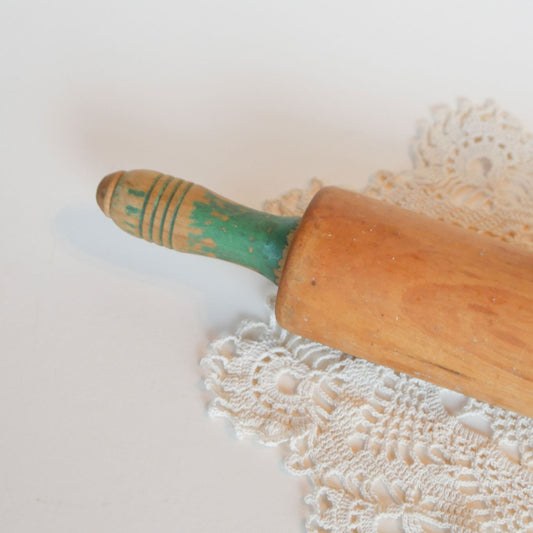 Vintage 17in Wooden Rolling Pin with Chippy Green Handles