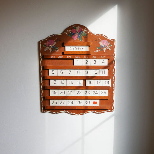 Vintage Hand Painted Perpetual Wood Calendar