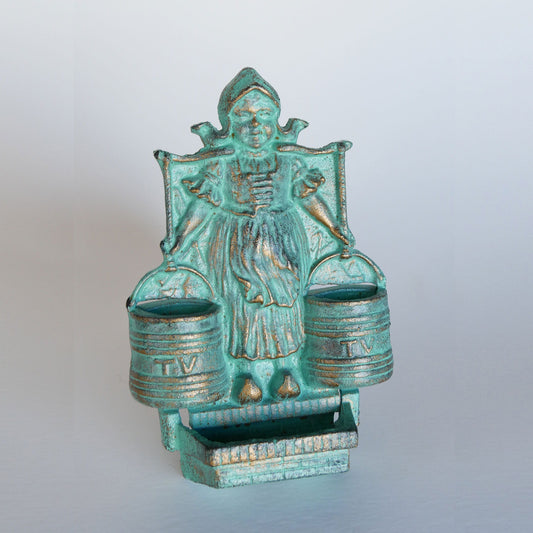 Vintage Turquoise Cast Iron Dutch Girl Matchstick Holder