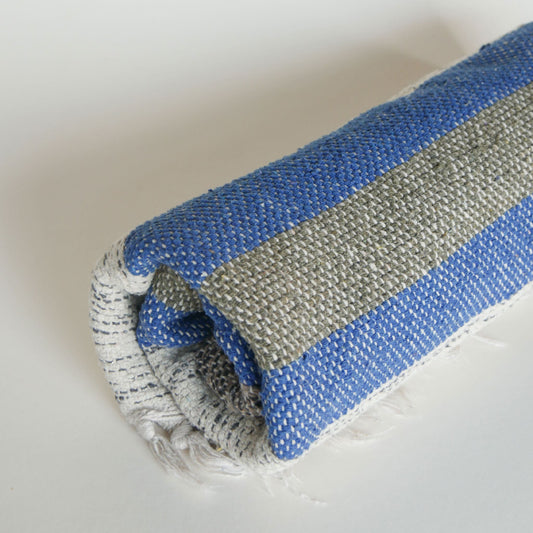 50in Vintage Handwoven Grey and Blue Striped Rug