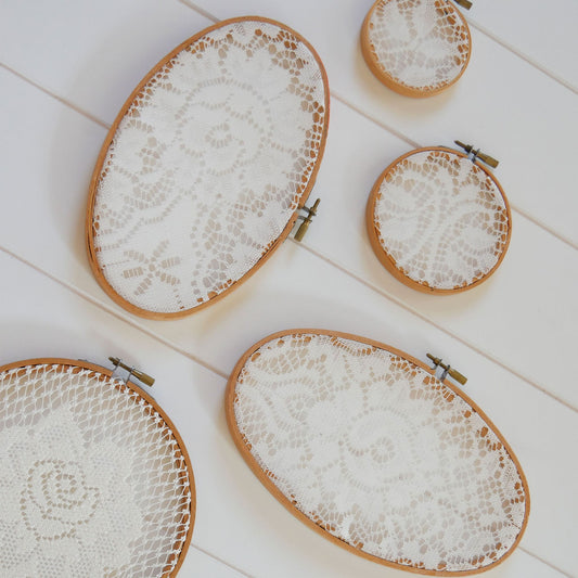Vintage Hoop and Lace Gallery Wall, Includes 5 Pieces