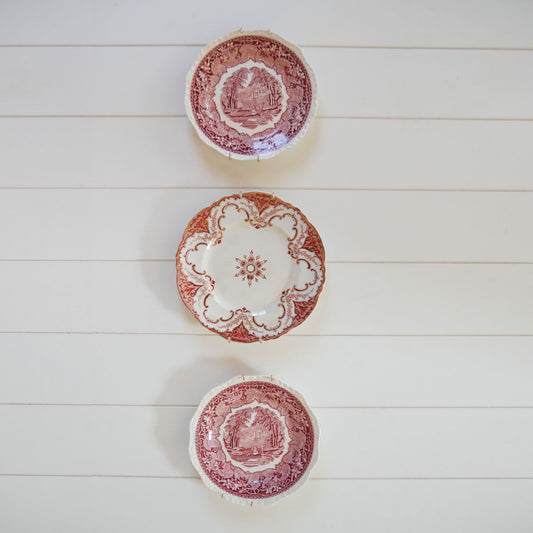 Antique Red and White Plate Gallery Wall, Includes Plate Hangers