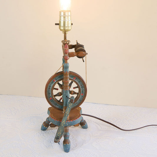 1954 ANRI Italian Handcrafted Spinning Wheel Table Lamp, Folk Art Lamp