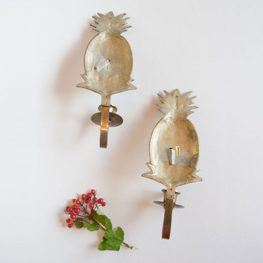 Pair of Vintage Brass Pineapple Candlestick Wall Scones