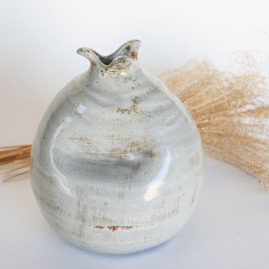 Vintage Seafoam Green Dimple Glazed Pottery Vase