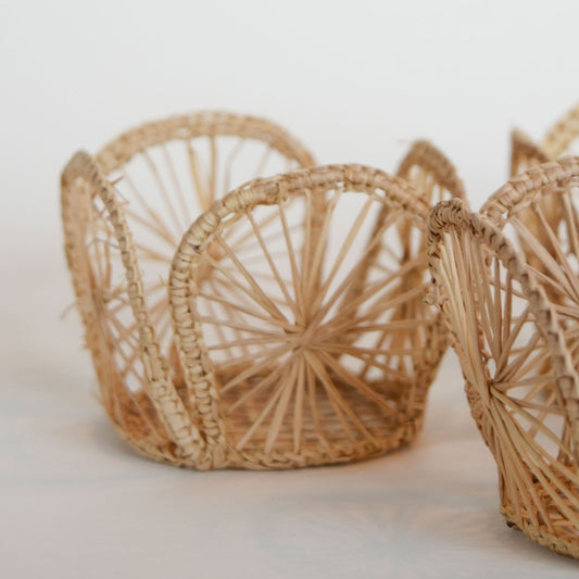Pair of Handwoven Raffia Lace Baskets, Boho Basket Wall Decor