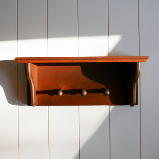 Vintage Wood Curio Shelf, Half Moon Spindle Rail Wall Shelf