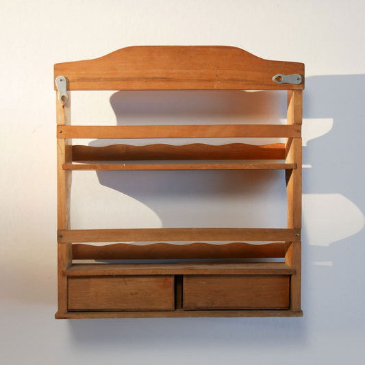 Vintage 12in Wood Spice Rack with Drawer and Porcelain Knob