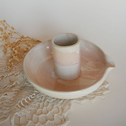 Ceramic Pottery Upright Chicken Cooker Roaster, Beige & Pink