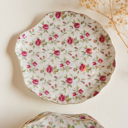 Vintage Hand Painted Rose Pattern with Gold Trim Saucers, Lefton China