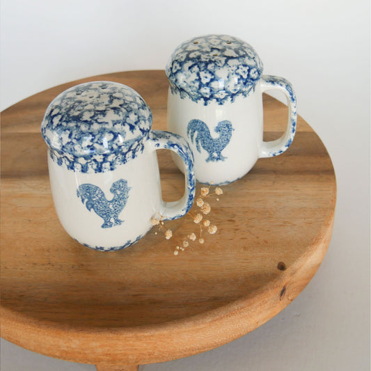 Blue and White Rooster and Pear Salt & Pepper Shakers, Blue Sponge