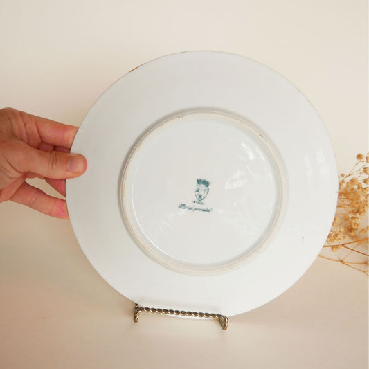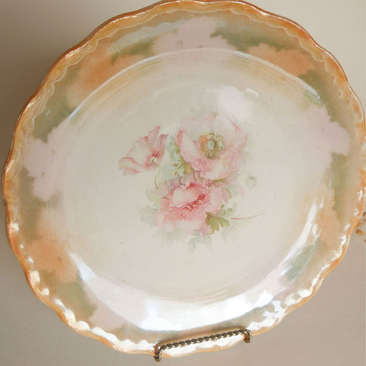 Vintage Pink Floral 10in Plate with Gold Scalloped Edge, D.E. McNicol, East Liverpool