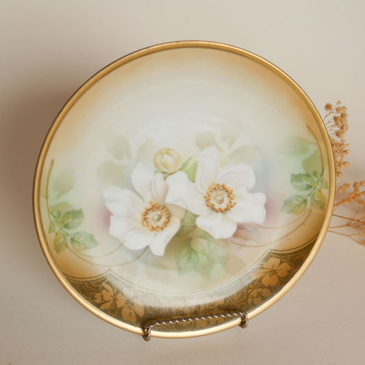Vintage Hand Painted White Floral RS Germany 8in Plate