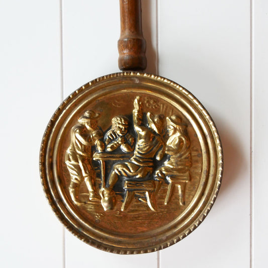Vintage XL Wood Handle and Brass Bed Warmer Wall Decor